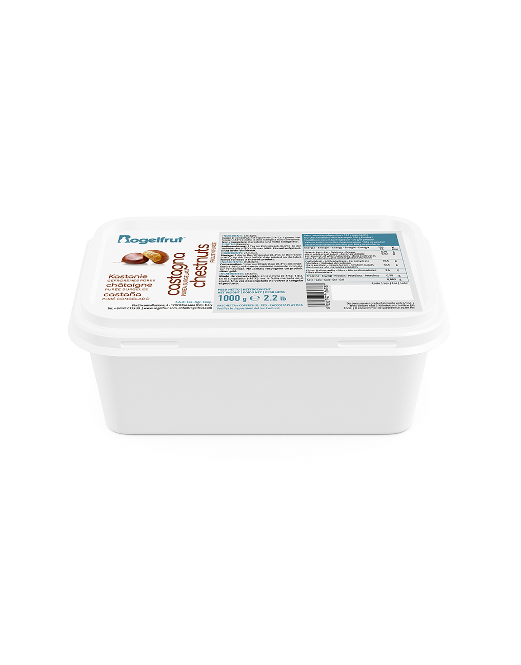La purea di castagna Rogelfrut è il prodotto ideale per ogni tipo di lavorazione in pasticceria e in gelateria. È un prodotto perfetto per creazioni di pasticceria e gelateria uniche e contiene il 20% di zuccheri totali (di cui Saccarosio ca 12.8% e Glucosio ca 15%) Scopri le ricette dedicate Cake morbido ai marroni e ciliegia pochée Montebianco a modo nostro